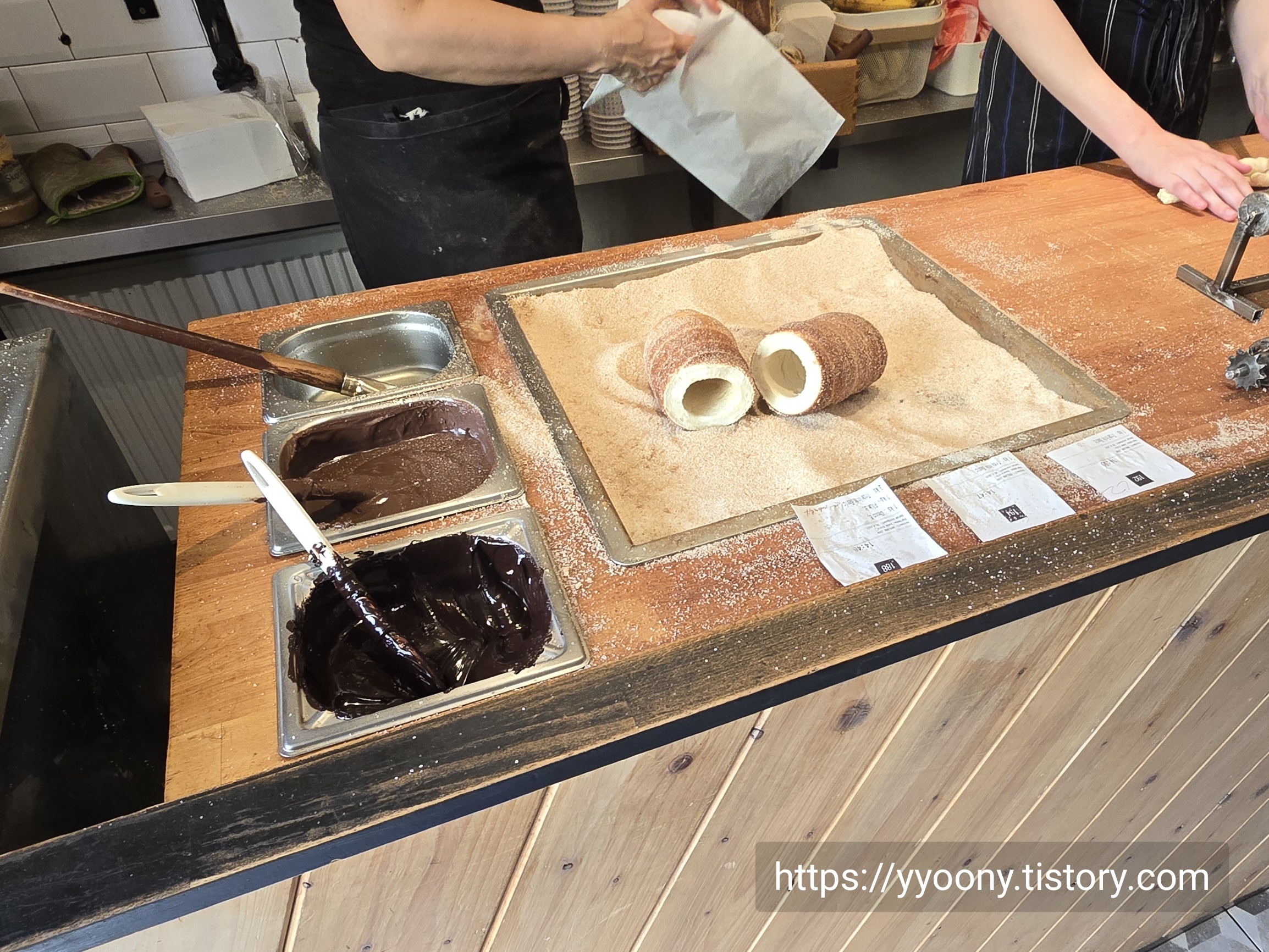 한국에서 먹어본 굴뚝빵은 두께가 얇아서 빵이라기보단 파이 같았는데, 내가 그동안 굴뚝빵을 잘 못 알고 있었나 보다.