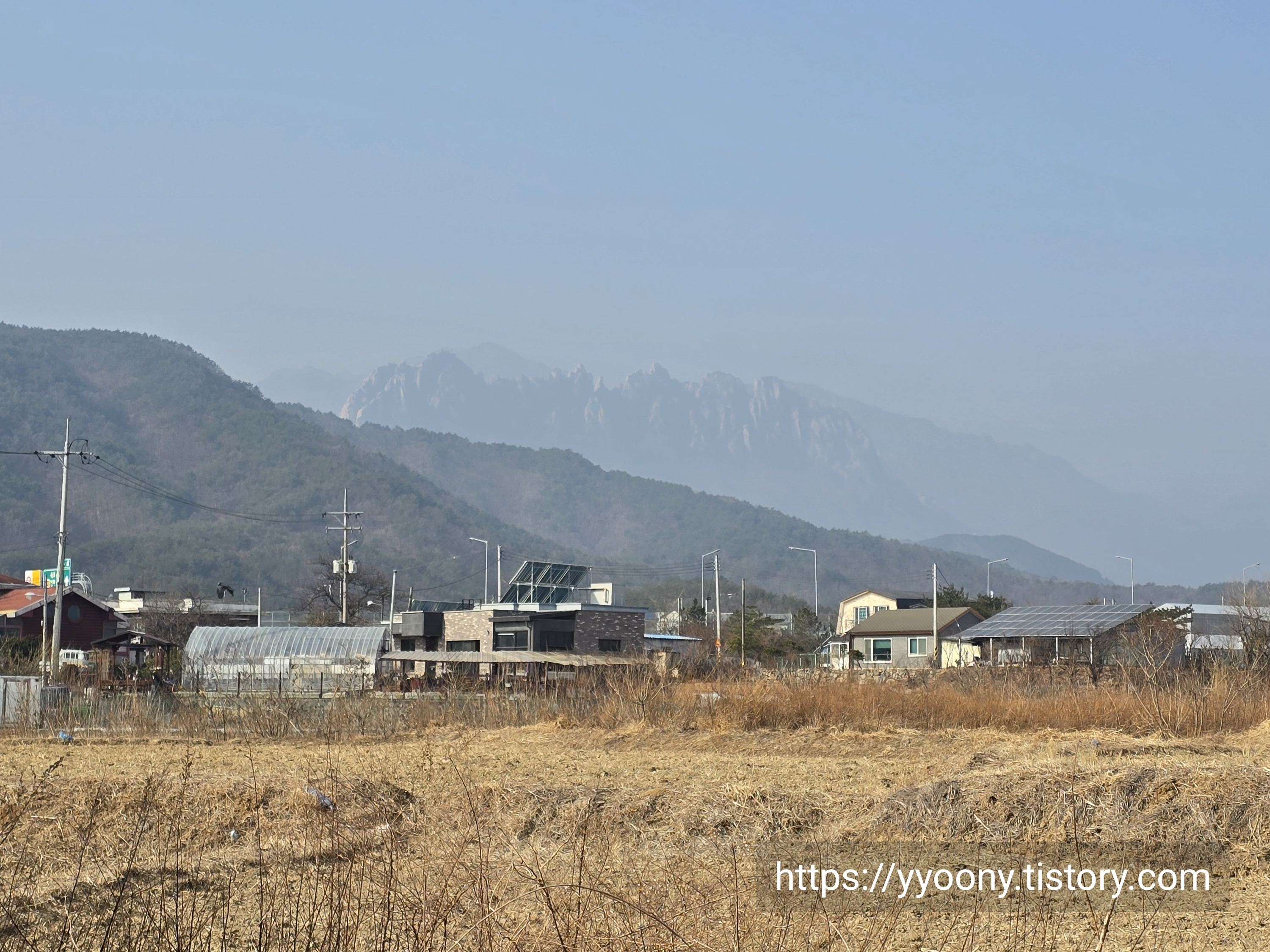 저어기 산 위에 뿌연 것이 울산바위인 듯하다.