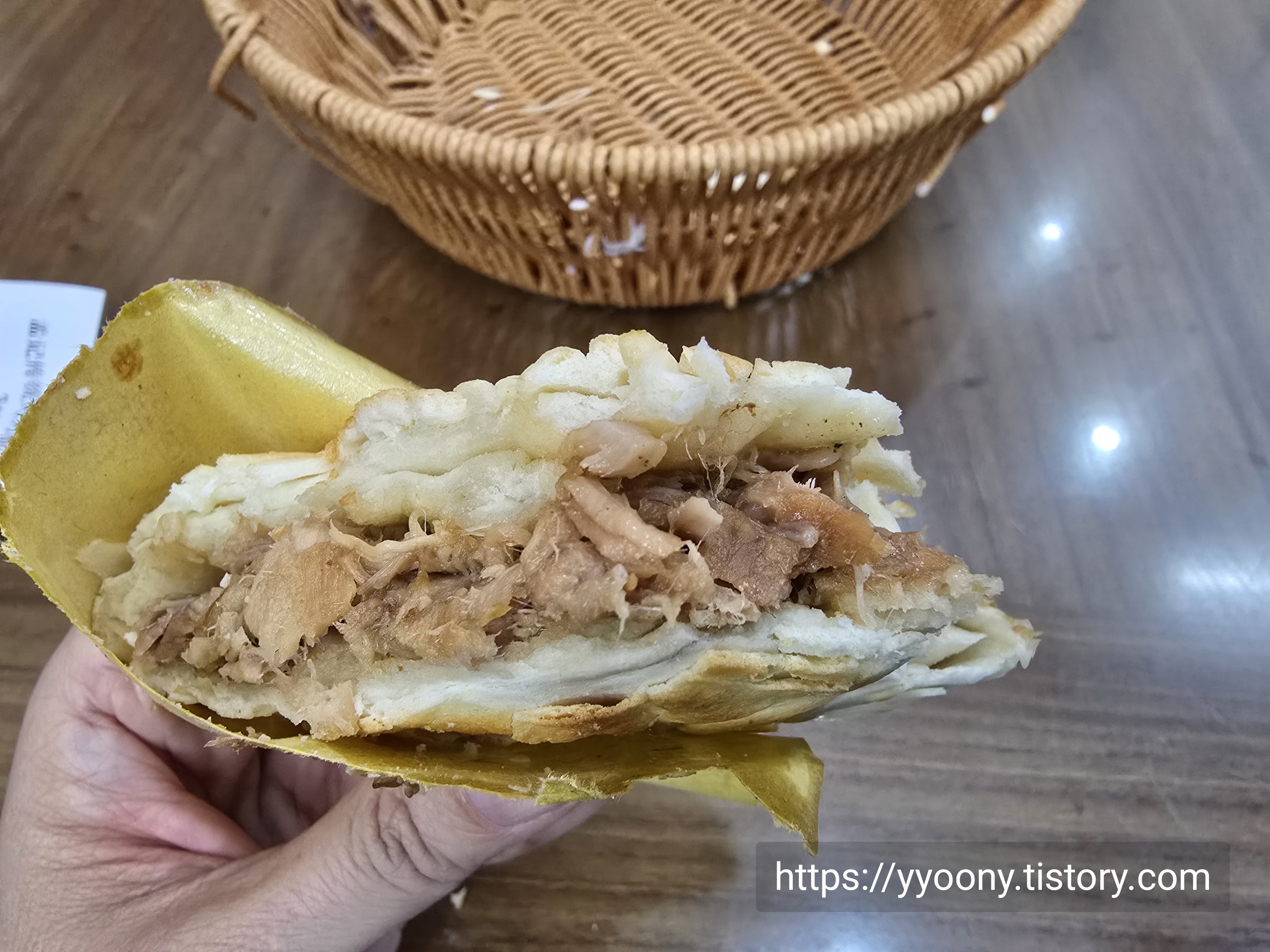 빵이 따끈하고 겉이 바삭, 살코기는 짭조름 담백해서 정말 맛있었다.