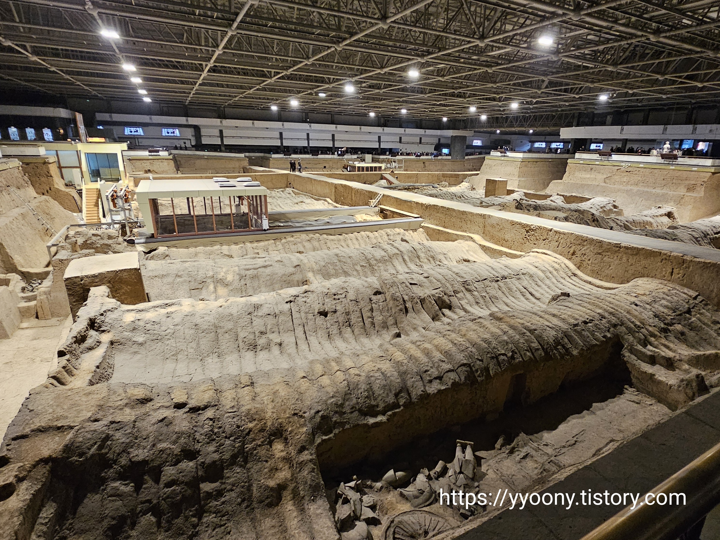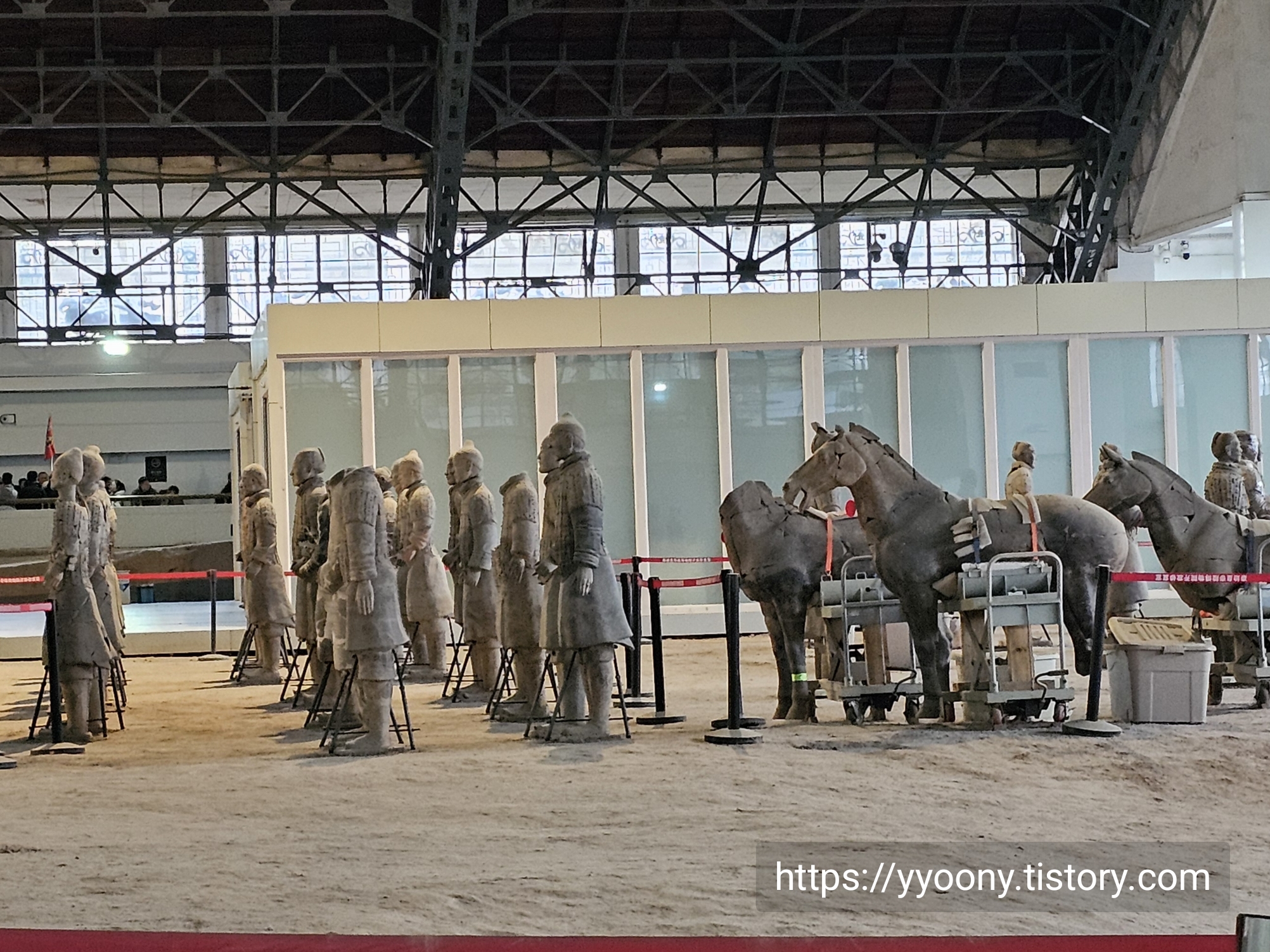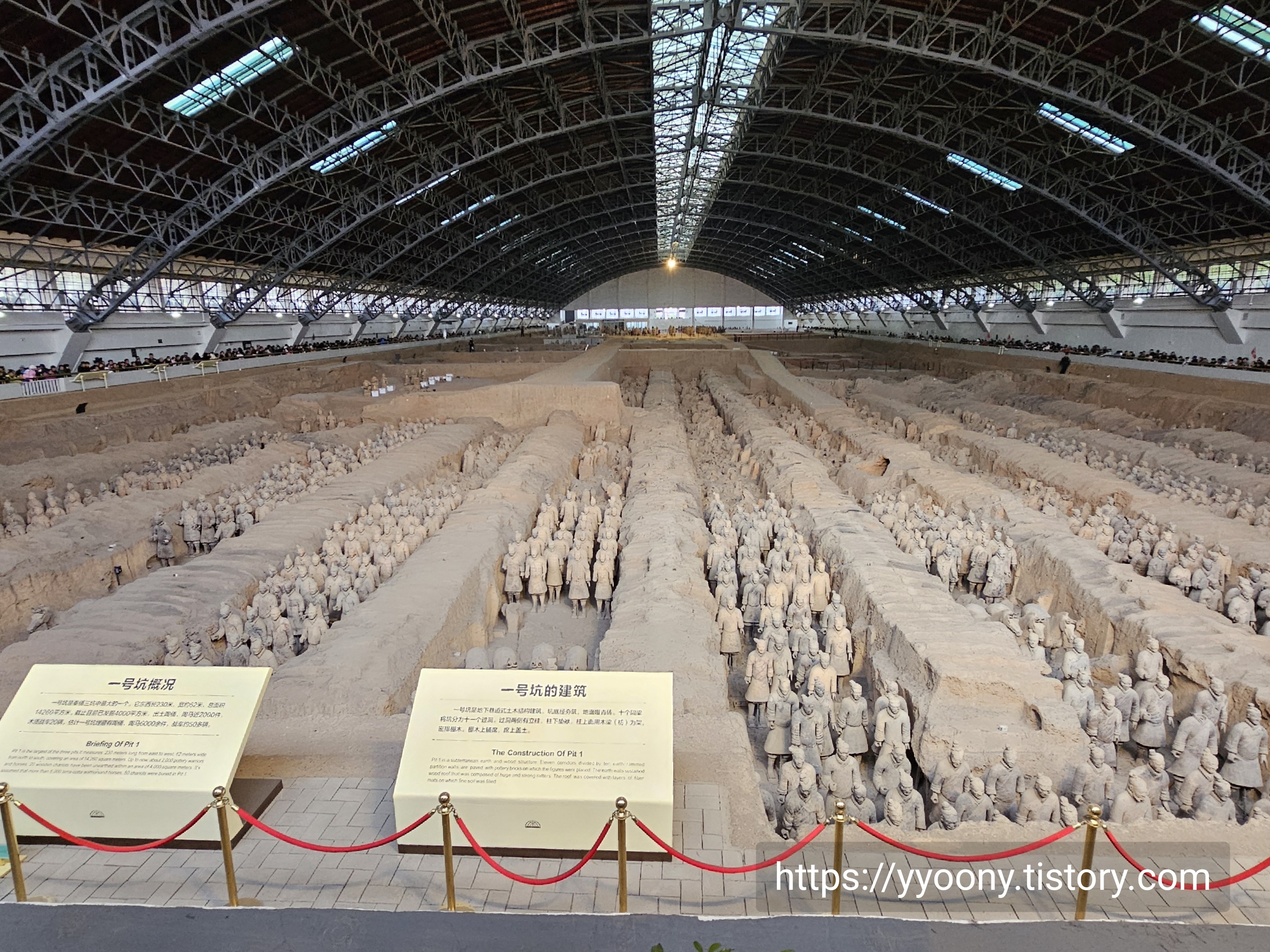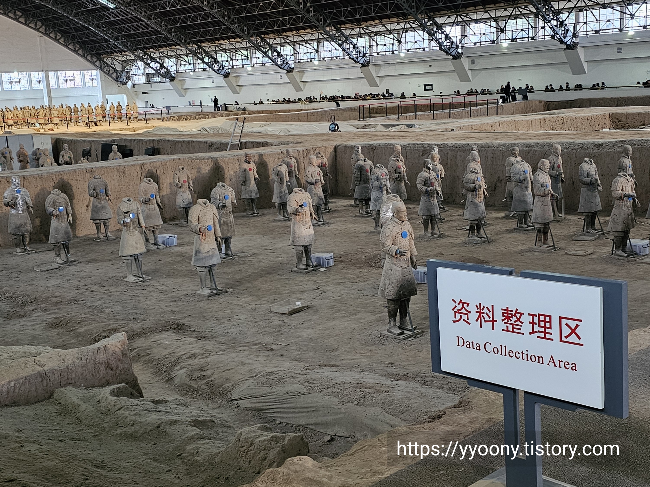 축구장 면적 두 배의 공간에 테라코타 전사들이-오디오 가이드에서 흙으로 빚어진 군인들을 이렇게 지칭한다- 배치돼 있고 뒷부분은 아직도 발굴 중이라고 했다.