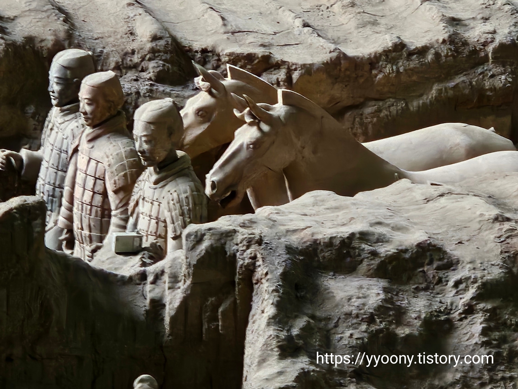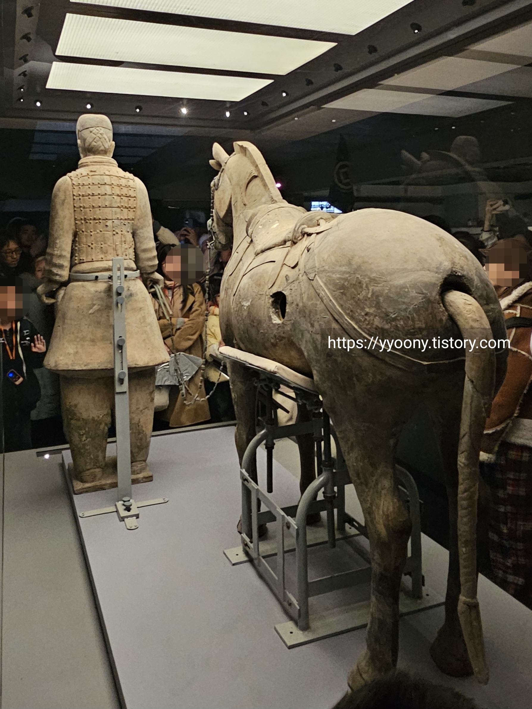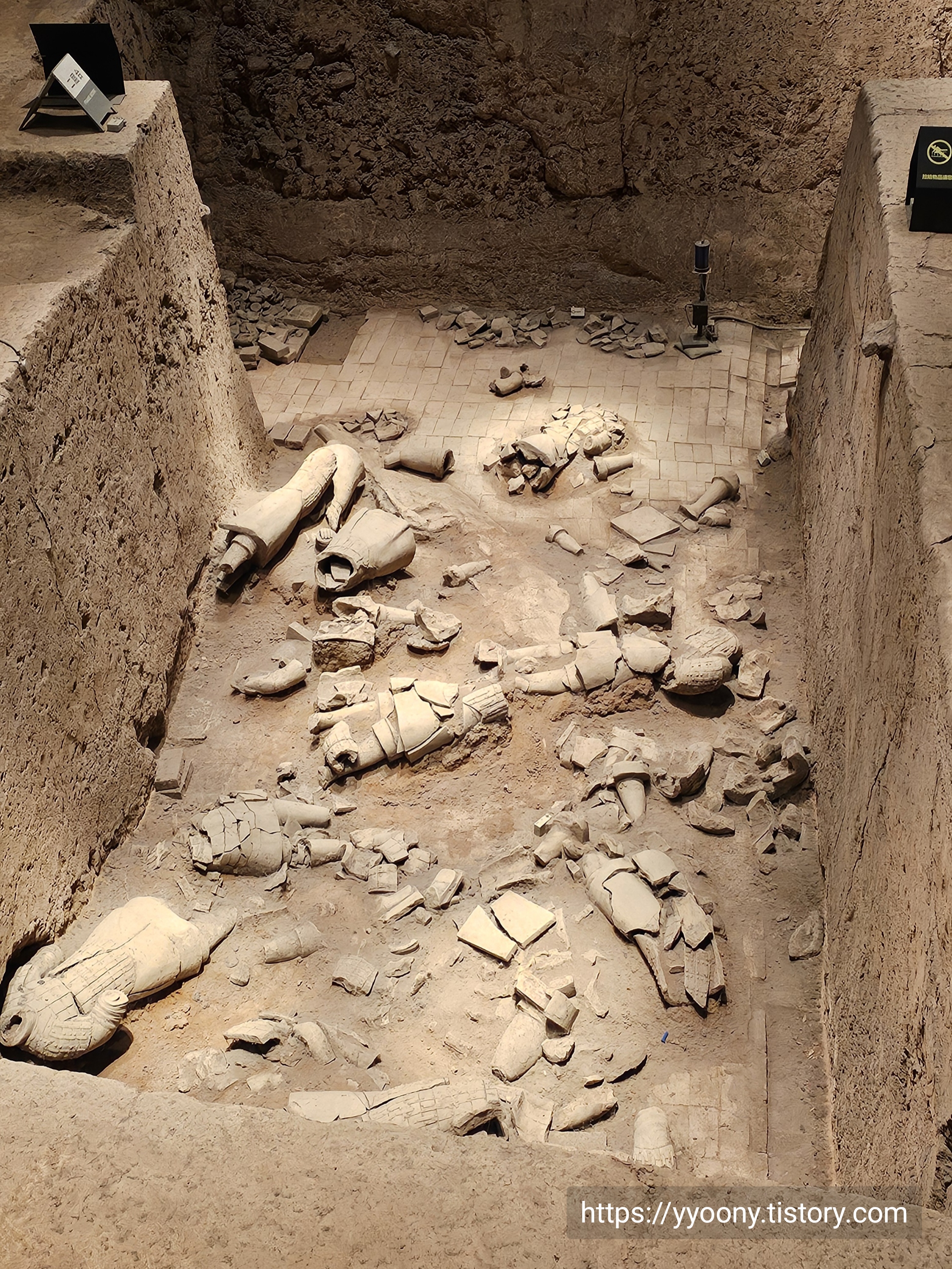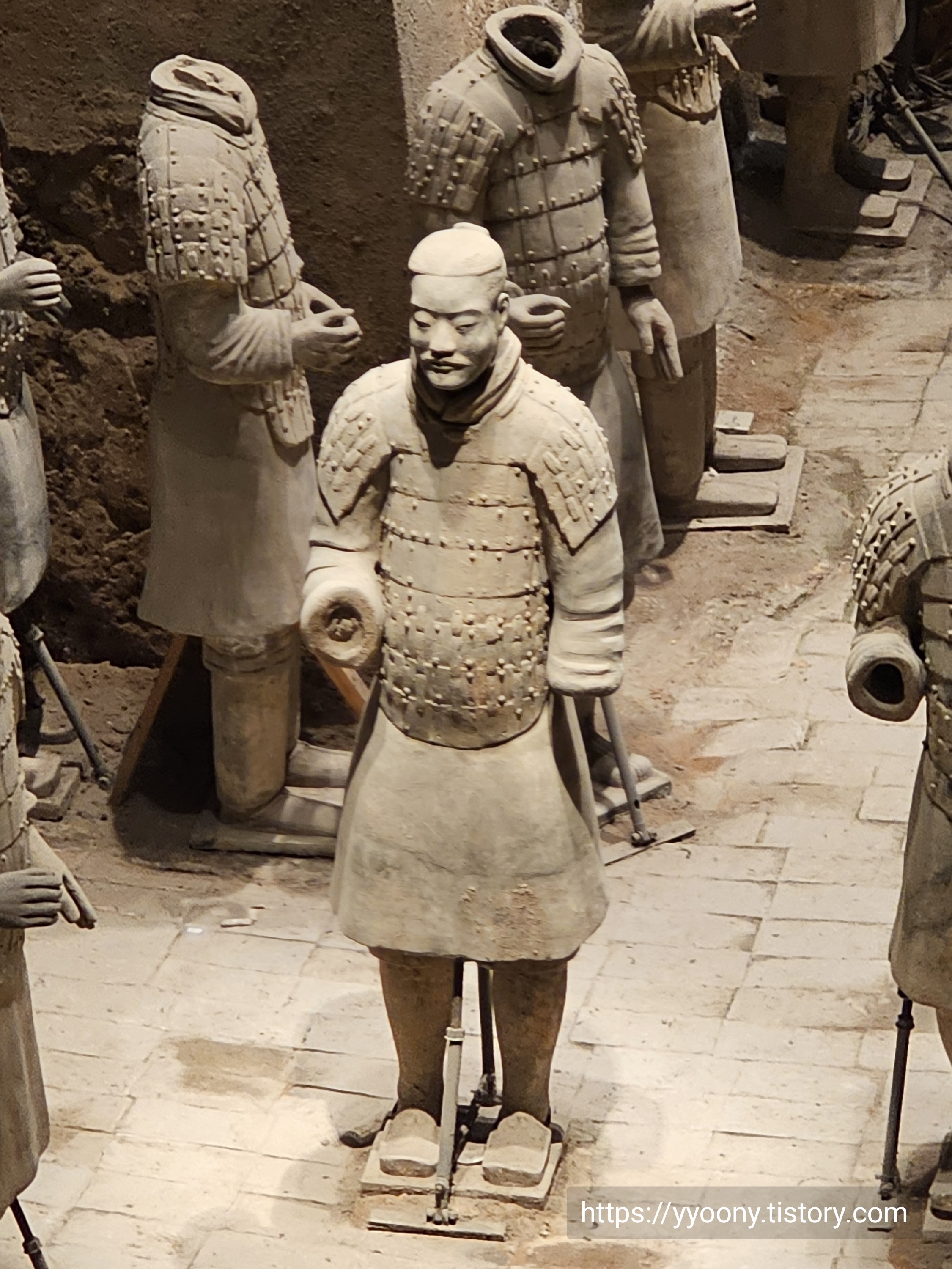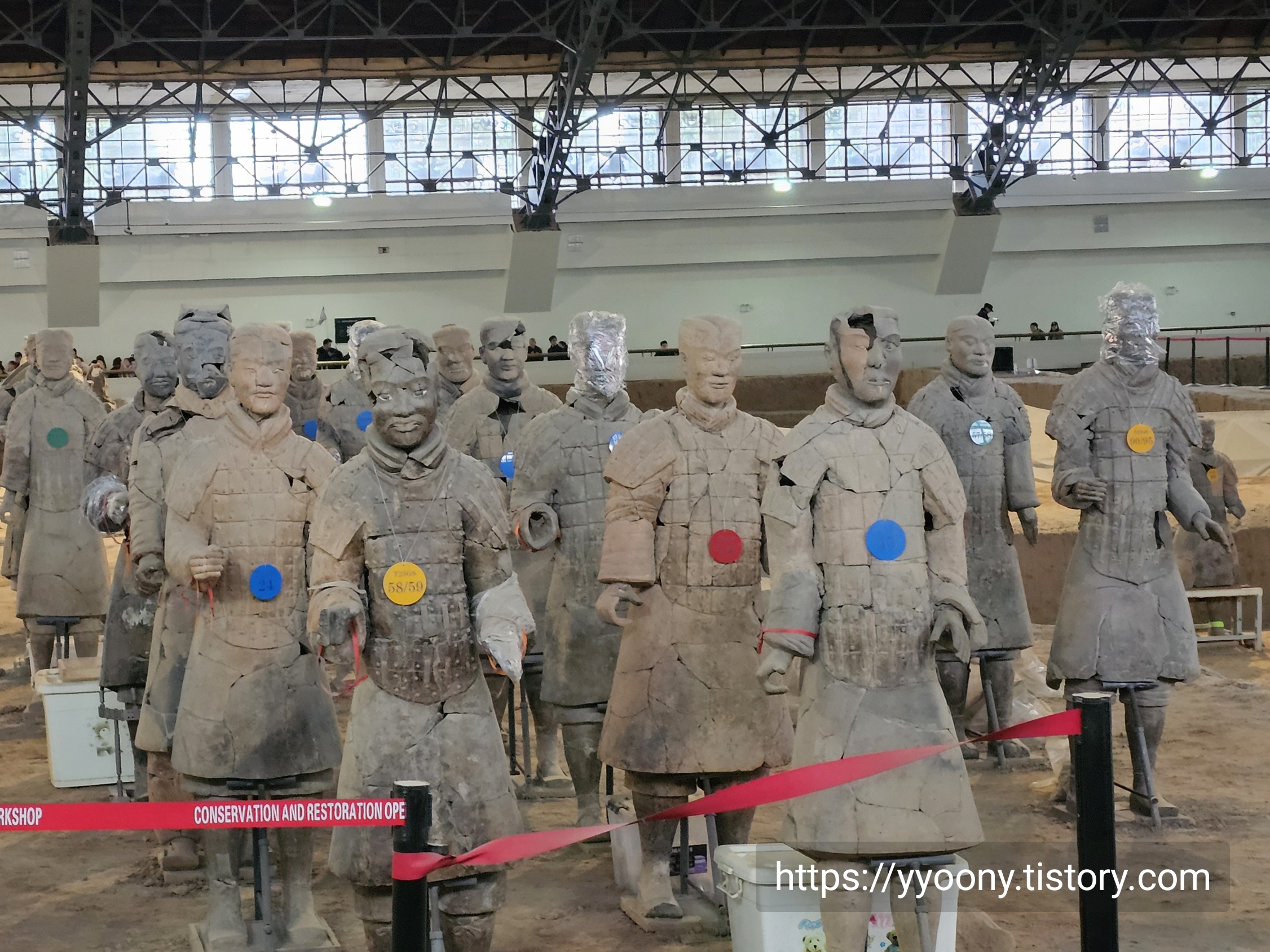 축구장 면적 두 배의 공간에 테라코타 전사들이-오디오 가이드에서 흙으로 빚어진 군인들을 이렇게 지칭한다- 배치돼 있고 뒷부분은 아직도 발굴 중이라고 했다.