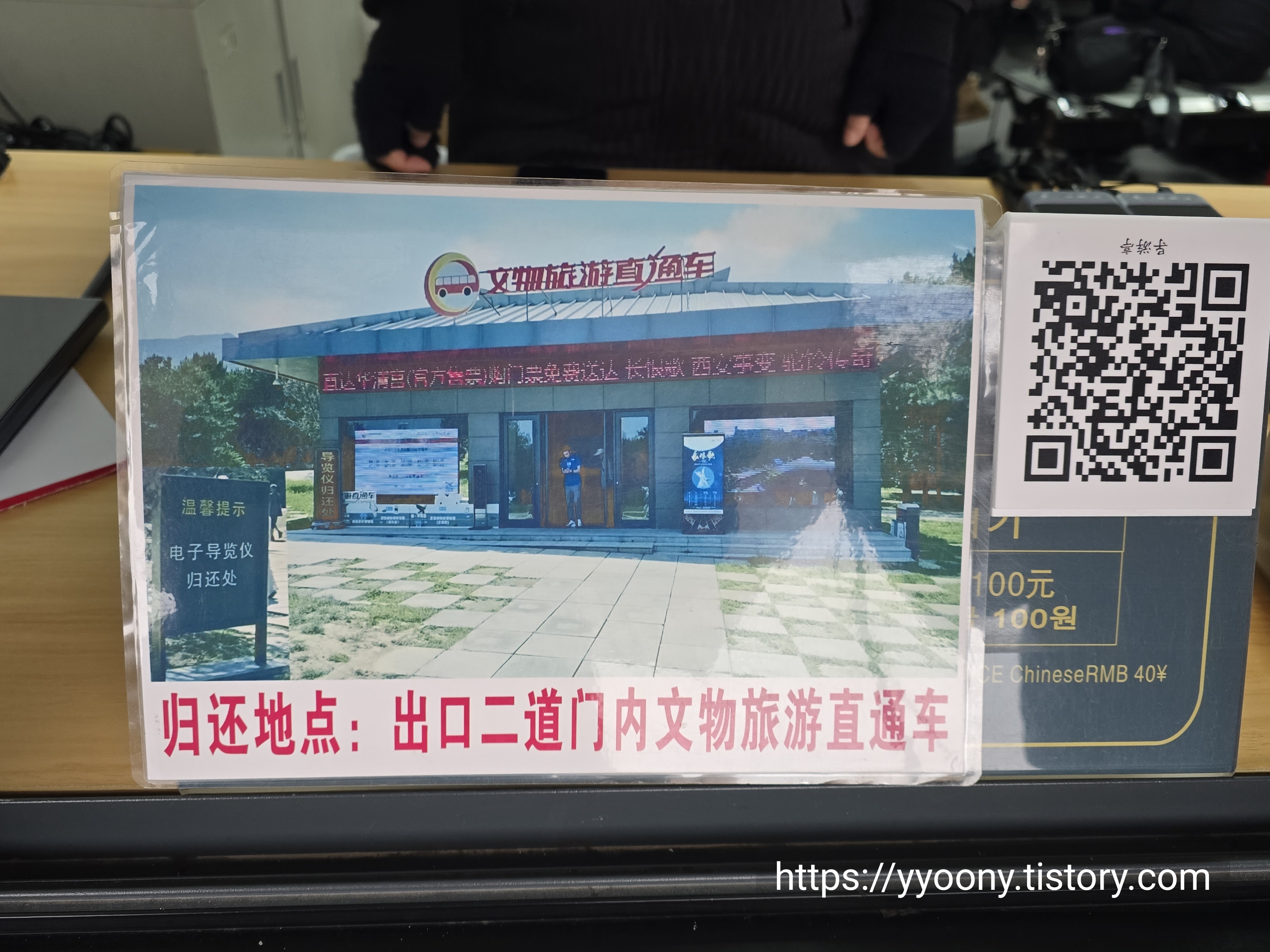 2호갱을 나와 출구 방향으로 나오다가 오디오 가이드 반납 장소를 발견했다. 반납 완료!자세히 보니 병마용에서 화청궁, 병마용에서 시안 종루로 가는 직통버스표를 파는 곳이기도 하다.원래대